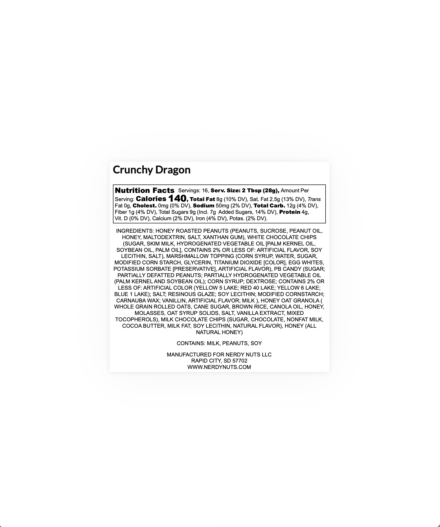 Sweet white chocolate peanut butter is layered on honey mallow creme, topped with crunchy honey granola, PB candy, white chocolate chips and milk chocolate chips!