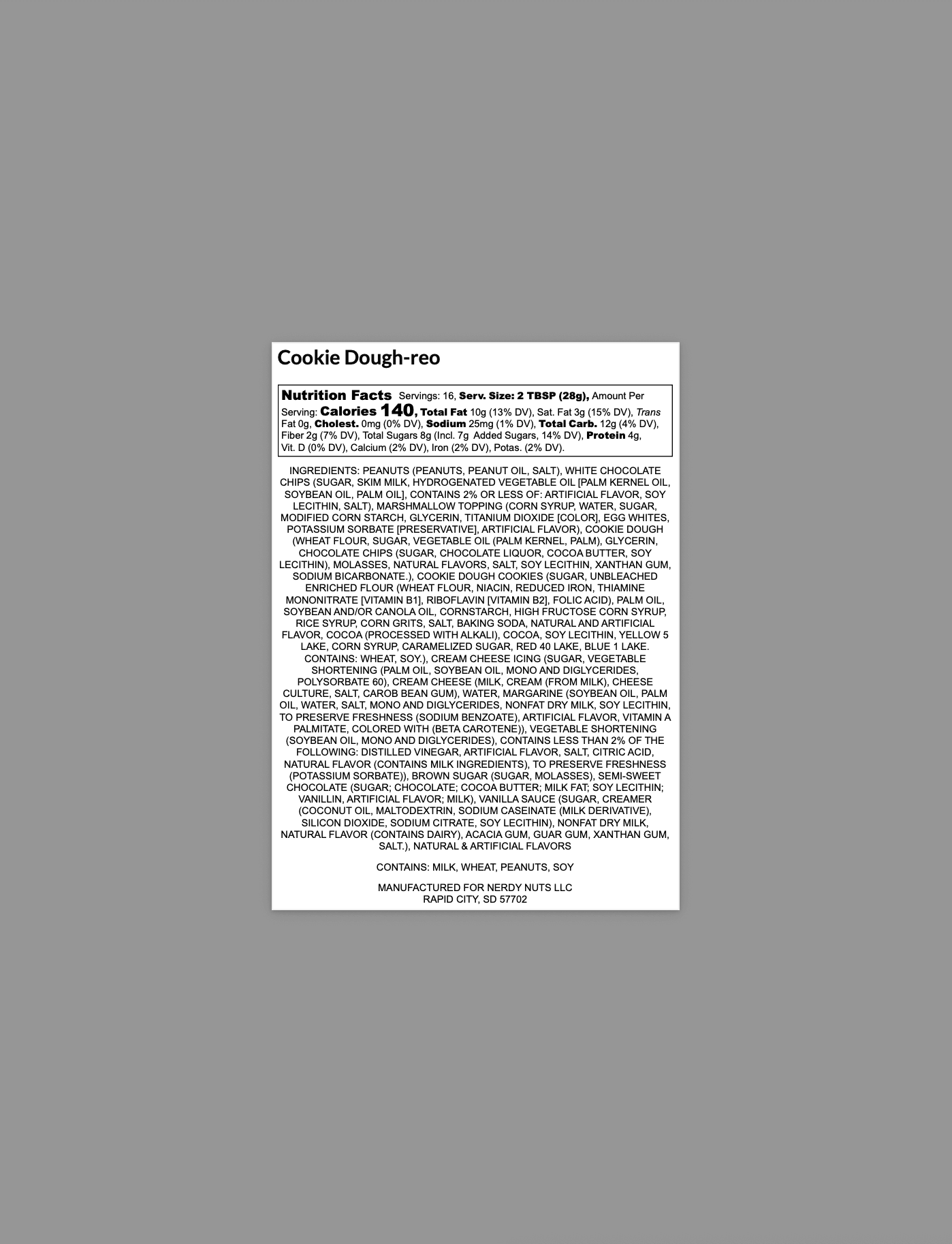 “Smunchy” brown sugar white chocolate peanut butter is layered on cookie dough mallow frosting, topped with cookie dough creme cookies & cookie dough!