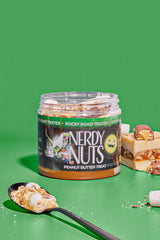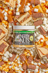 “Smunchy” white chocolate peanut butter is layered on marshmallow fluff, and vanilla caramel topping, topped with fluffy mini marshmallows, caramel shortbread candy stix, & caramel bits!
