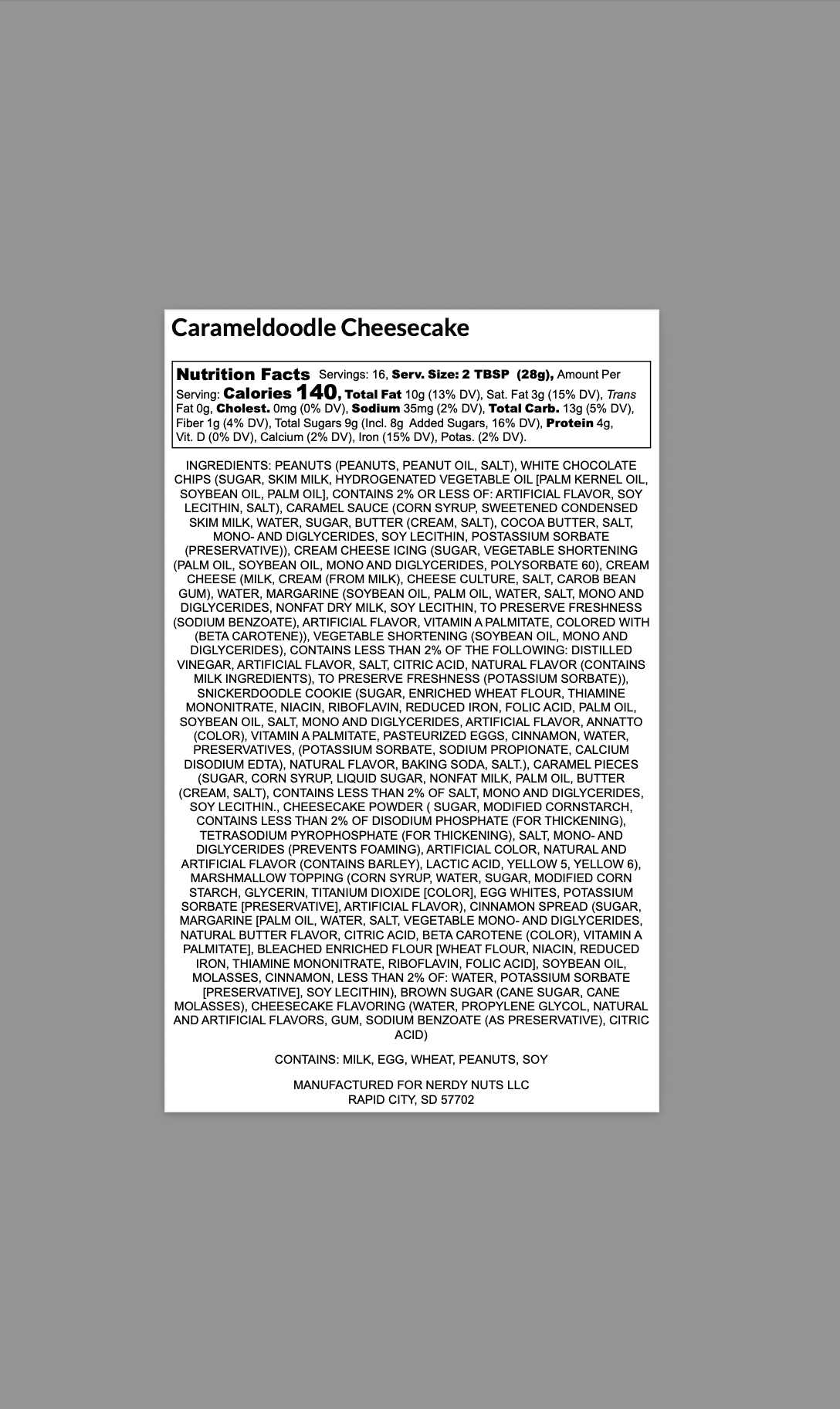 Brown sugar cheesecake peanut butter is layered on cinnamon caramel sauce, swirled with cinnamon cheesecake mallow frosting, topped with snickerdoodle cookies & caramel bits!