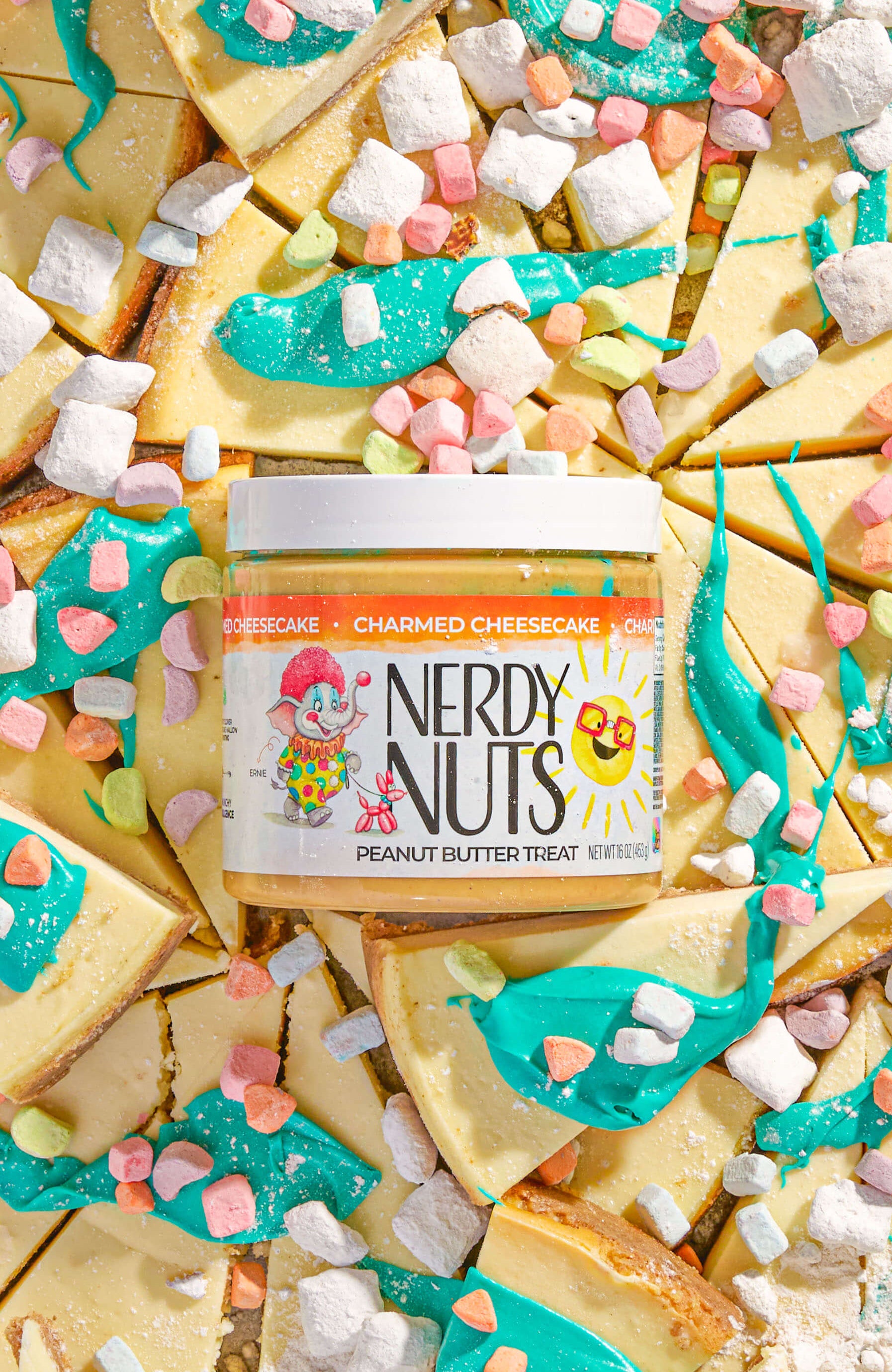 "Smunchy" white chocolate cheesecake peanut butter is layered on graham crackers, topped with lucky clover cheesecake mallow creme, rainbow mallow bits, & puppy chow chex cereal pieces!