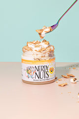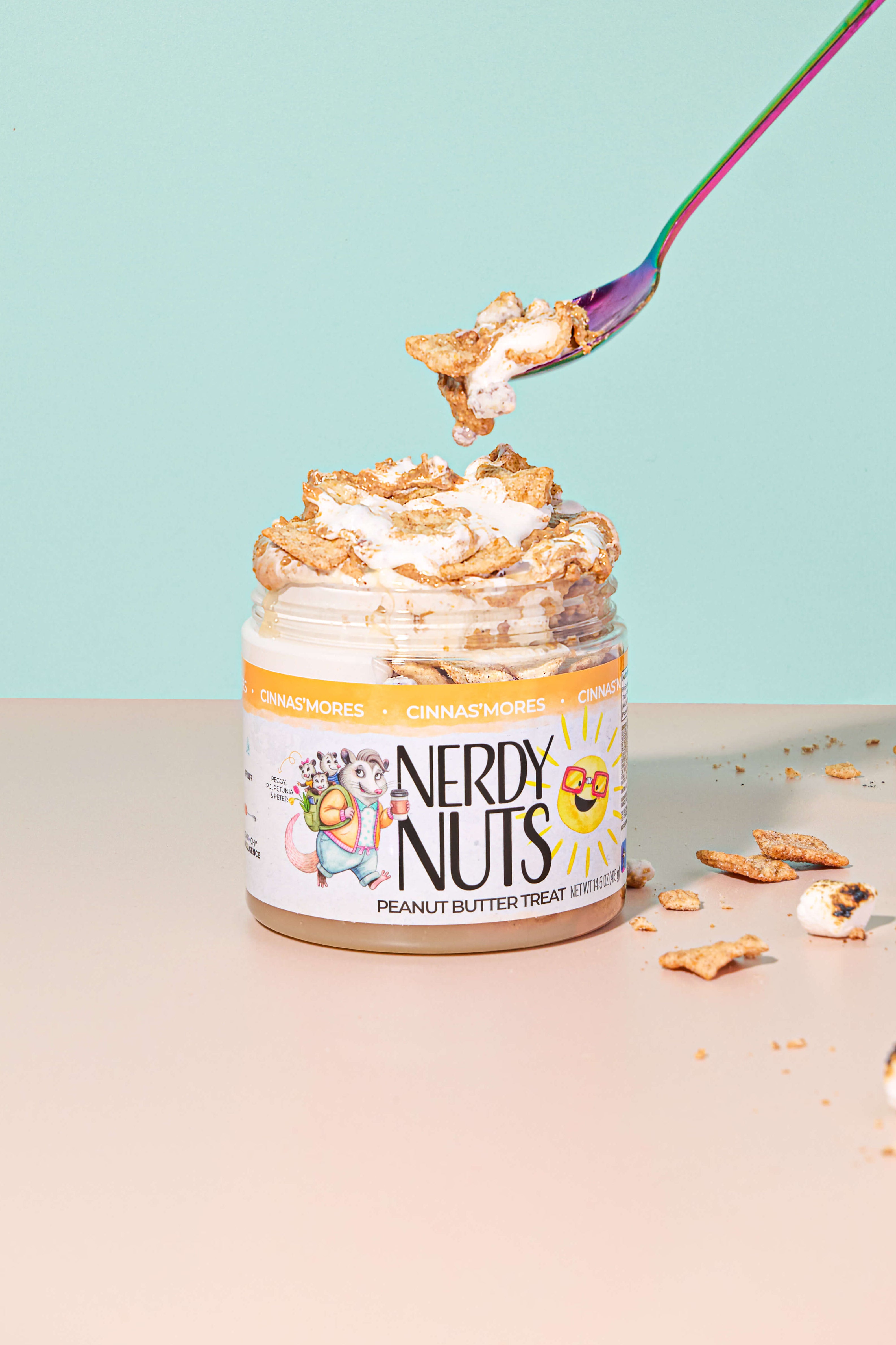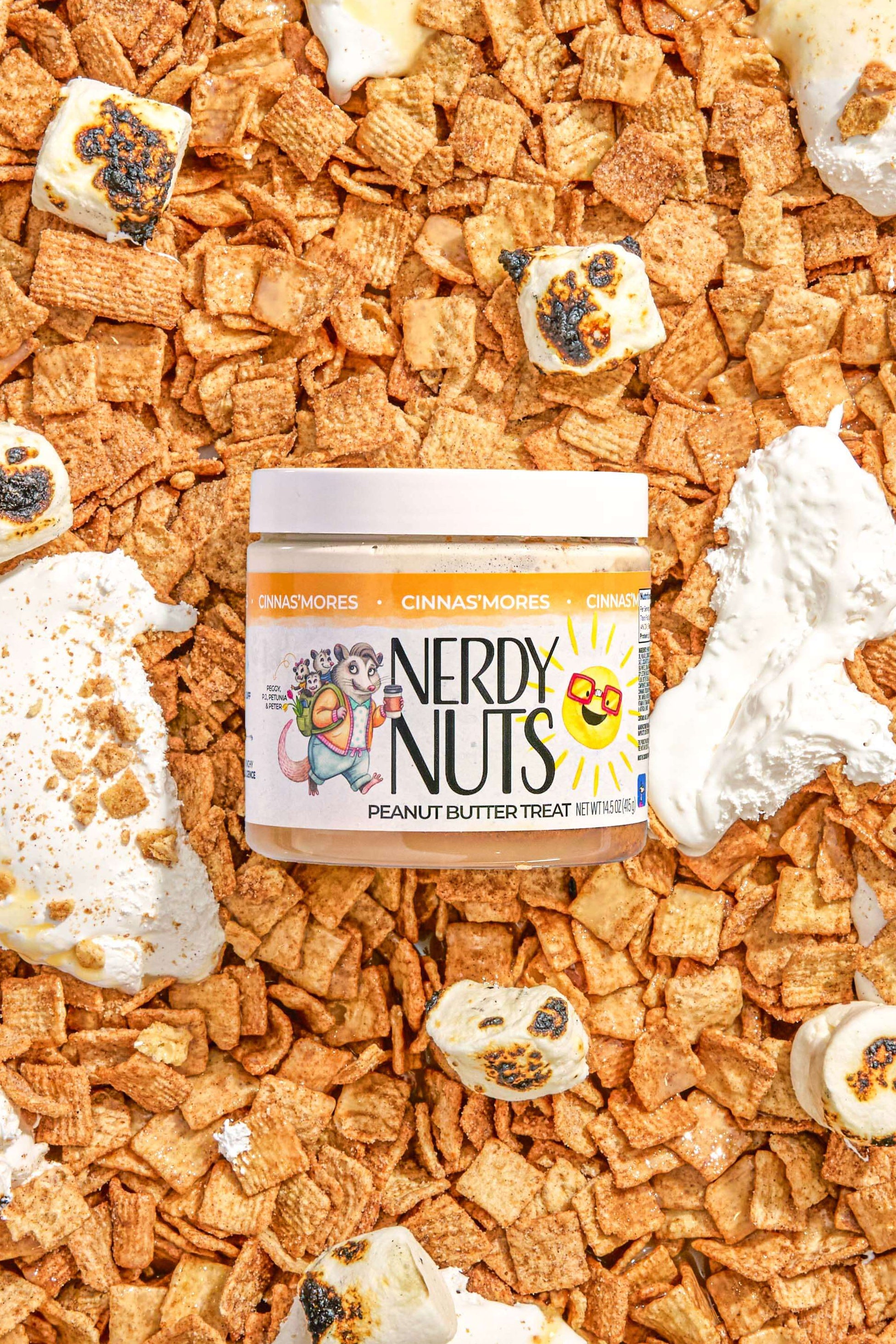Cinnamon white chocolate peanut butter is layered on fluff and toasted marshmallow sauce, topped with cinnamon crunch cereal and s’mores clusters! This cozy treat will have you feeling all the nostalgia and summer-night vibes!