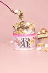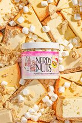 “Smunchy” white chocolate peanut butter is layered on fluff and chocolate cookie crumbs, swirled with cheesecake mallow frosting, fluffy mini marshmallows, & peanut butter-filled wafer chunks!