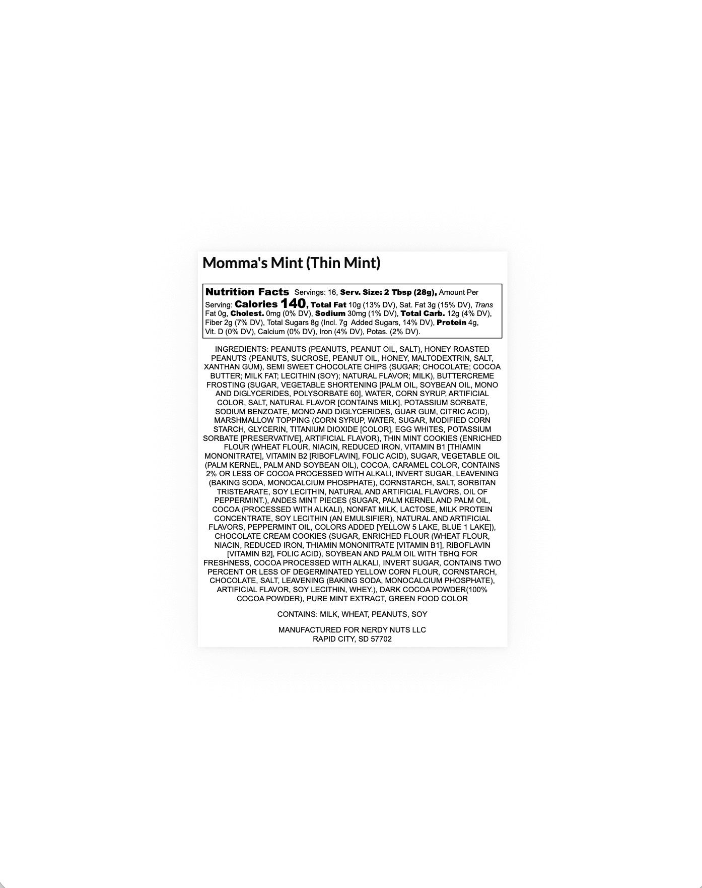 Sweet dark cookies & cream peanut butter is swirled with green minty mallow creme, topped with thin mint cookie chunks and chopped chocolate mint candies!