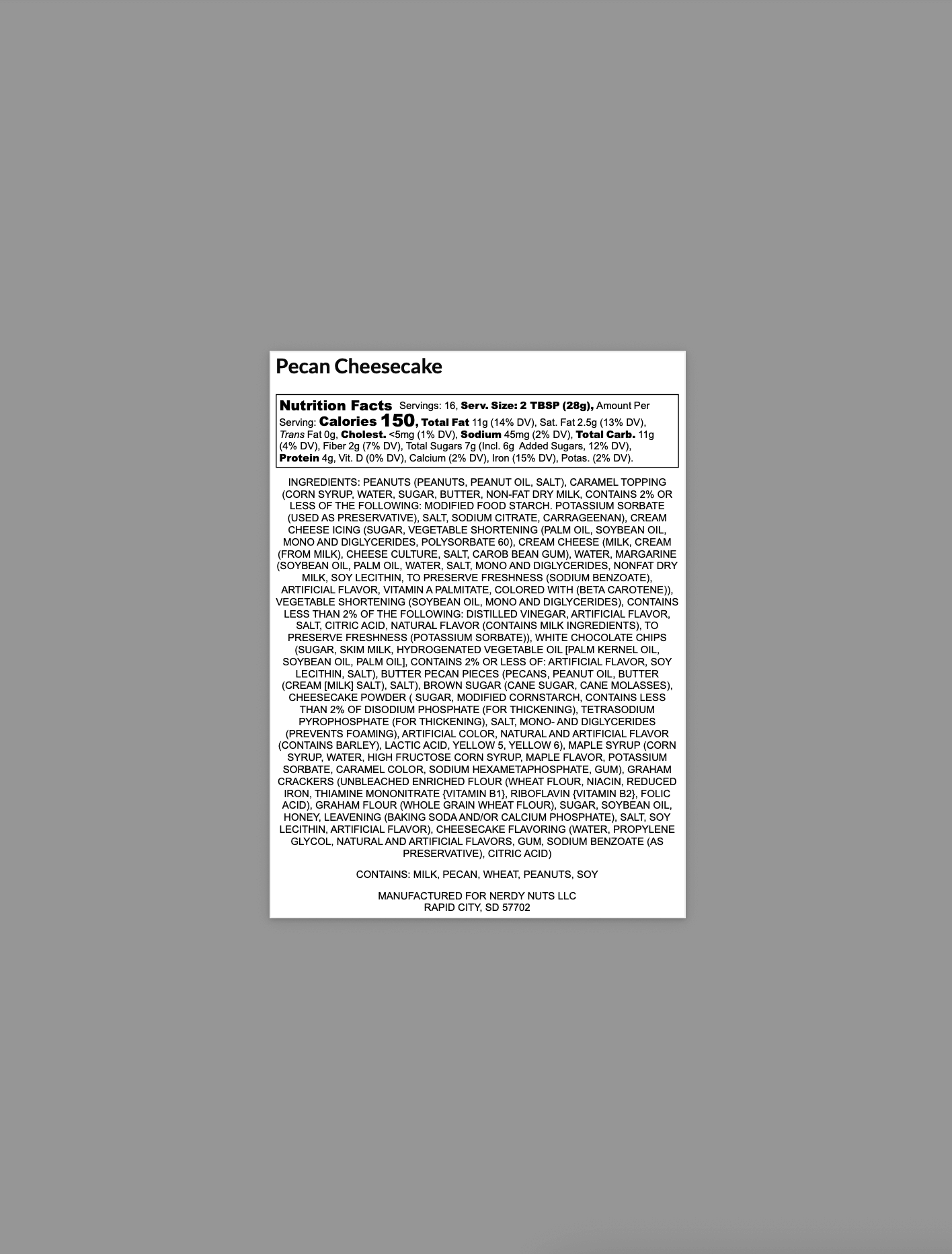 Brown sugar cheesecake peanut butter is layered on graham cracker crumbs, topped with caramel pecan cheesecake topping & buttered pecans!