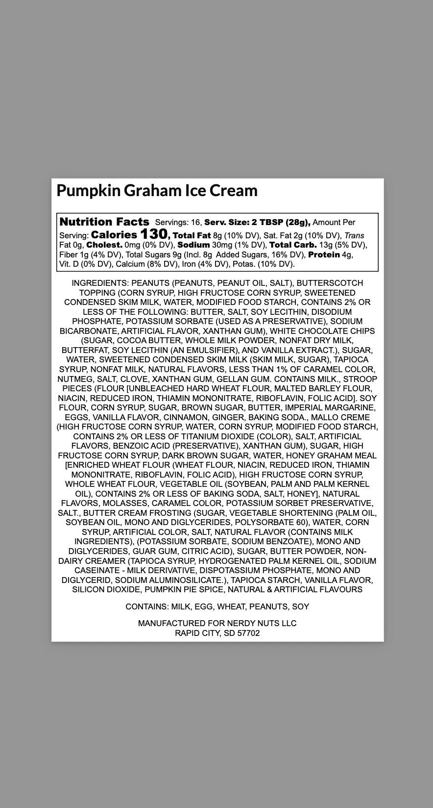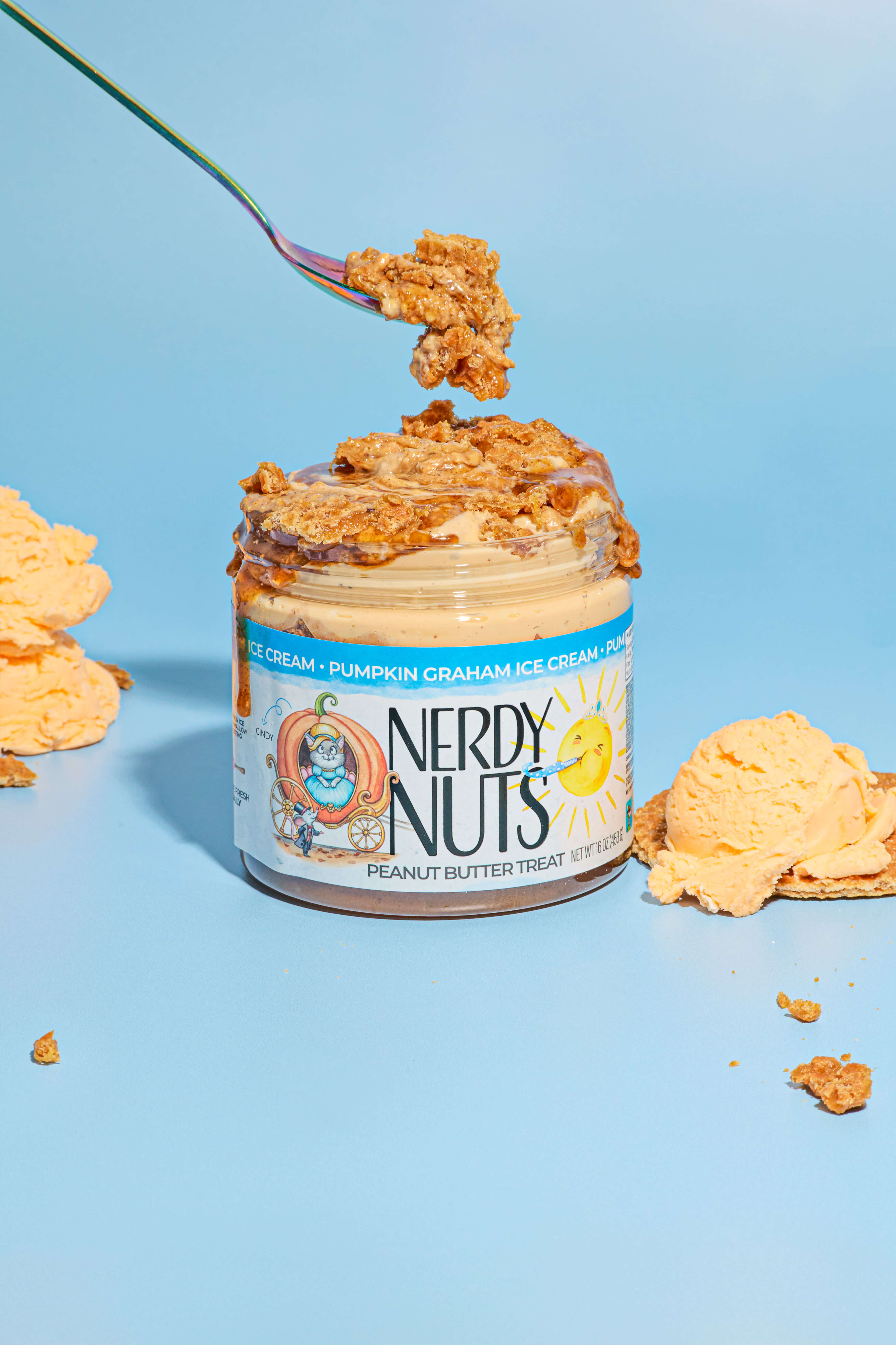 “Smunchy” vanilla pumpkin peanut butter is layered on buttery graham cracker sauce, topped with pumpkin ice cream mallow frosting & cinnamon caramel stroop wafers!